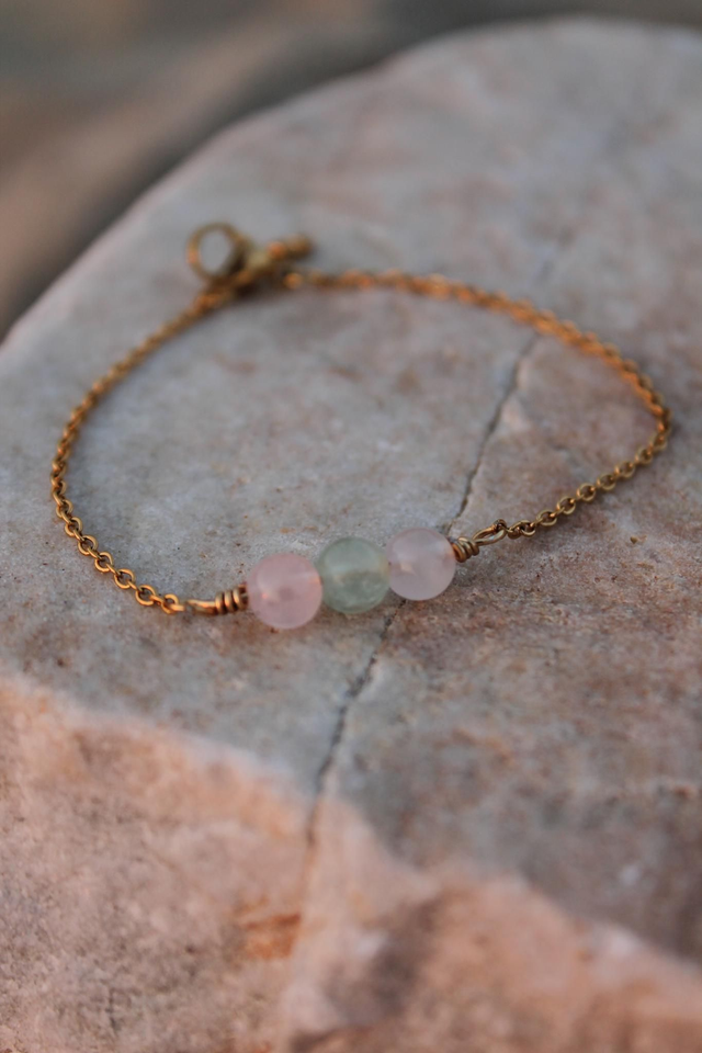 • Perles Fluorite et Quartz Rose.
